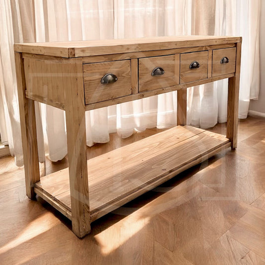 Ajoutez une touche de style avec une console de salle de bain en bois massif. Parfaites pour les petits espaces, nos consoles offrent un rangement pratique et une esthétique chic.